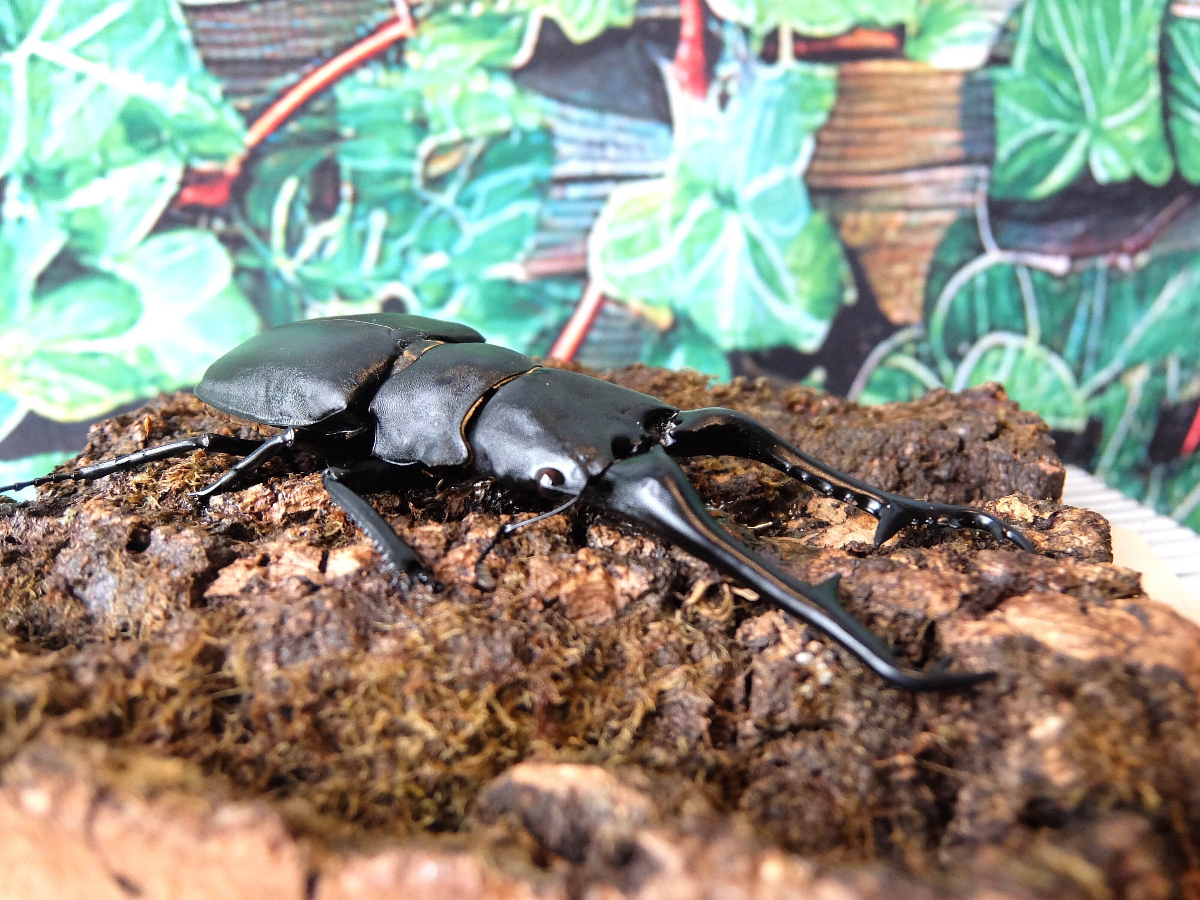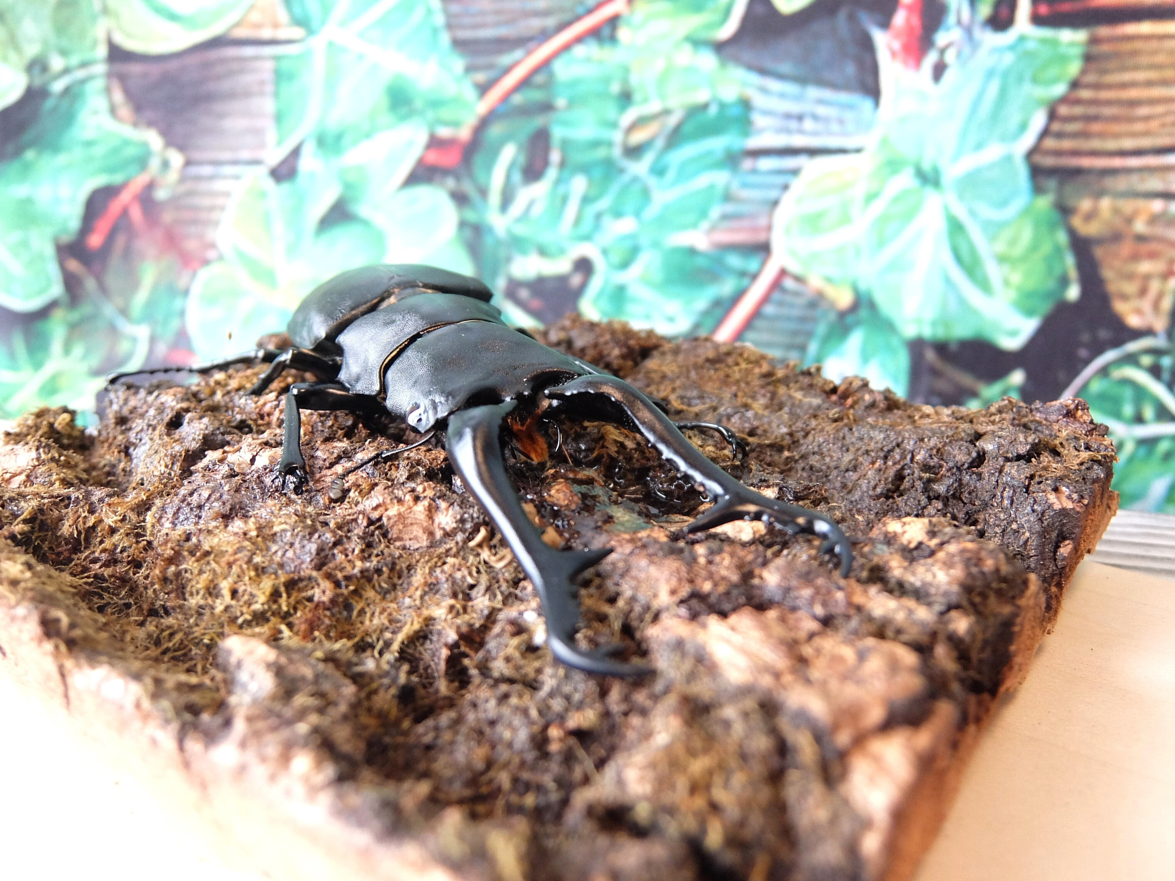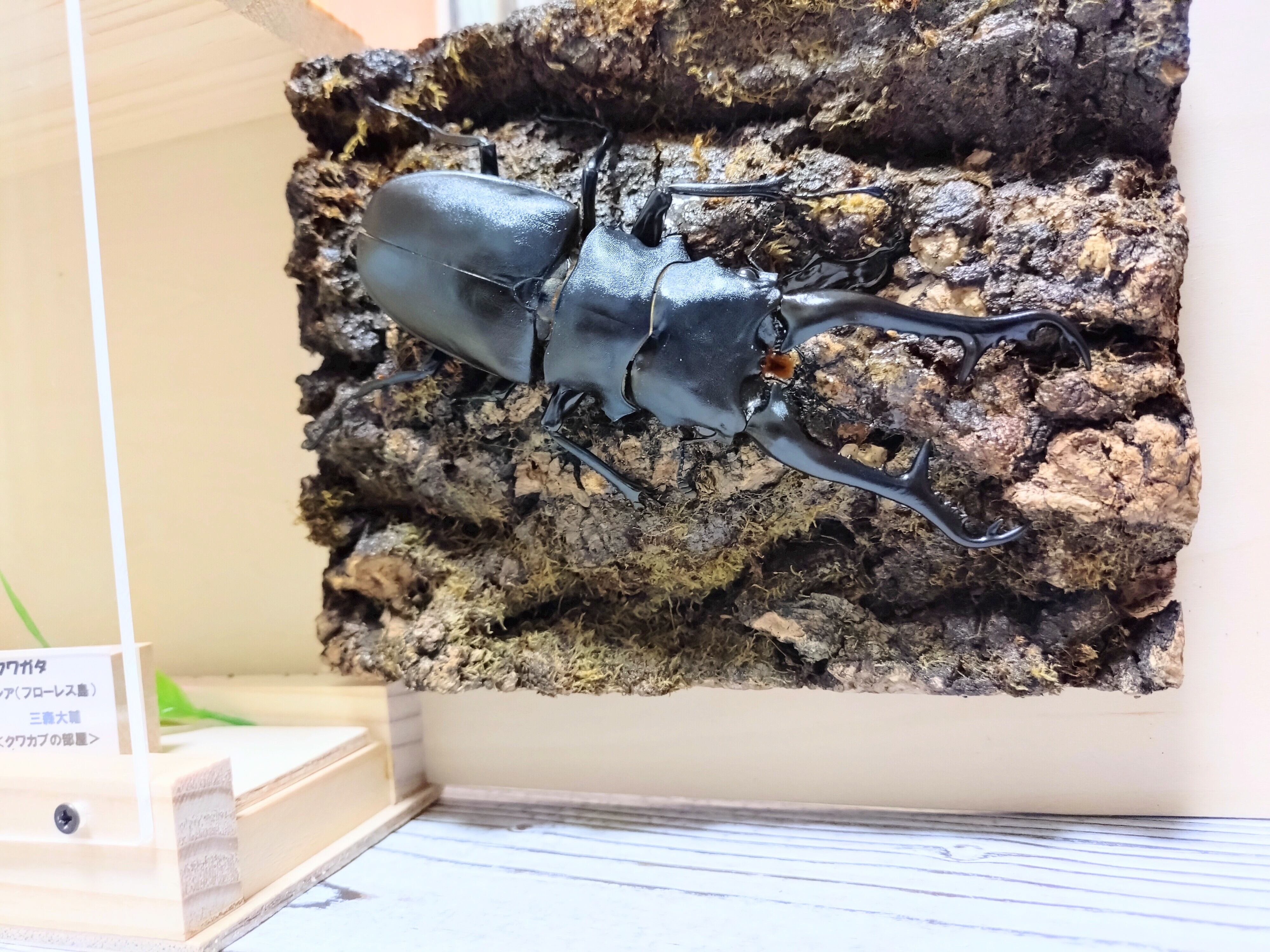 特大!!大迫力!!ギラファノコギリ。蜜を吸う姿がリアルに再現されています。